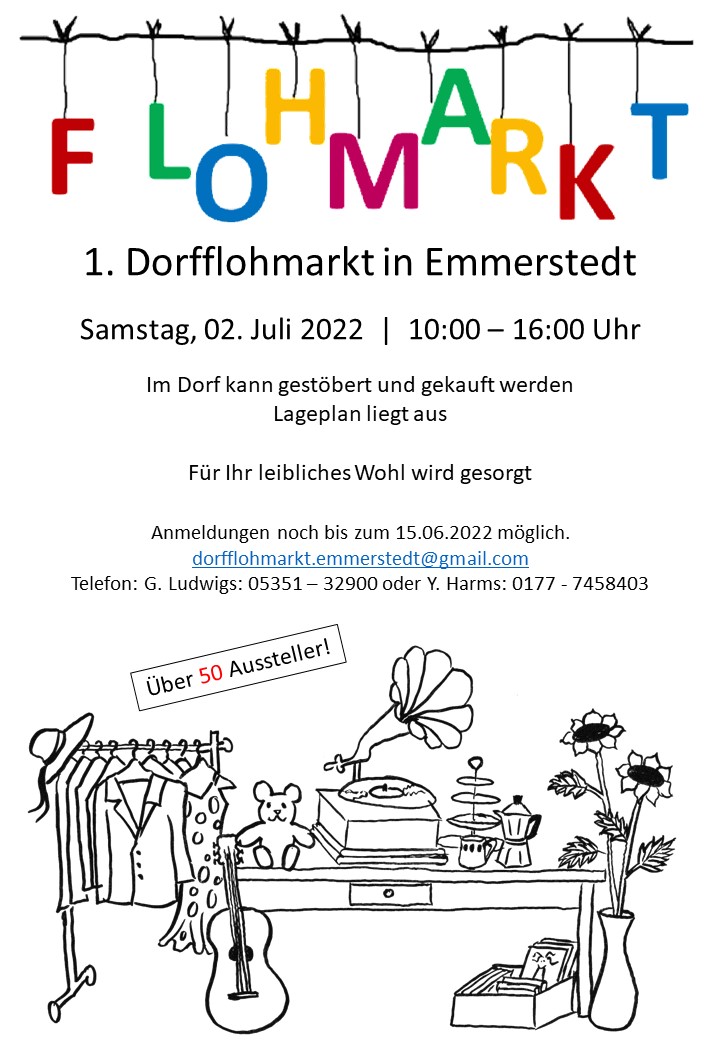 Sonntag, 29. Mai 2022Erster Dorfflohmarkt in Emmerstedt![]() ACHTUNG! Der Dorfplan ist online und kann hier eingesehen werden: PDF-Dorfplan Flohmarkt 2022 Was sich in den letzten Jahren etabliert und bewährt hat, findet nun auch in Emmerstedt statt. Emmerstedt wird zum Dorfflohmarkt und so manche Höfe und Garagen wandeln sich zum kleinen Handelsstand. Mit bunten Ballons und viel guter Laune wird am 02. Juli 2022 von 10:00 bis 16:00 Uhr zum Feilschen, Klönen und Ergattern so mancher Schätze aufgerufen. Auf Facebook, WhatsApp und auf der inoffiziellen dorfflohmarkt-online.de-Seite ist der Termin bereits zu finden. Am Samstag den 2. Juli sollen alle teilnehmenden Grundstücke mit Ballons oder bunten Dingen an den Einfahrten auf sich aufmerksam machen. Natürlich gehen auch selbstgemalte Schilder oder Kreidemalereien auf den Fußwegen. Dies hat sich bereits auch bei anderen Märkten bewährt. Die Karte mit den Ständen wird online zur Verfügung gestellt (ich werde hier selbstverständlich aktualisieren). Ggf. wird es auch ausgedruckte Pläne geben. Der Dorfflohmarkt dient neben dem "Luftmachen" zu Hause und dem fröhlichen Treiben und Handeln auch dem guten Zweck. Im Dorf wird es an verschiedenen Orten Spendendosen geben - die Spenden kommen dem Verein Hospizarbeit Helmstedt e.V. für die Kinderabteilung zu Gute. Ab 12:00 Uhr wird es einen Verkauf von Speisen und Getränken durch den Sportverein Emmerstedt SVE und durch die Schützengesellschaft Emmerstedt e.V. auf dem Schützenplatz geben. Der Verkauf von Speisen und Getränken an den privaten Ständen sollte daher nicht stattfinden. Es werden allerdings Kuchenspenden für den Verkauf auf dem Schützenplatz gesammelt. Es wäre schön, wenn sich noch der ein oder andere Teilnehmer dafür freiwillig meldet. Weiterhin wird auf dem Schützenplatz eine Hüpfburg für die kleinen Gäste stehen. Hier obliegt den Eltern (Aufsichtsperson) die Aufsichtspflicht. Anmeldungen oder auch Anfragen bitte an die Organisatoren unter: dorfflohmarkt.emmerstedt@gmail.com Tipps für Standbetreiber: - Durch bunte Ballons, Fahnen oder Ähnliches am Fußweg auf den eigenen Stand aufmerksam machen - Waren und Trödel gut sichtbar auf Tapeziertischen platzieren (oder Mauern/Stühlen/Bänken) - Ausreichend Platz vorhalten: es können auch mal mehrere Standbesucher gleichzeitig erscheinen - Mit offenen Augen durch die eigenen Räumlichkeiten gehen: es wird sich sicher vieles Unnötige zum Verkauf finden Tipps für Flohmarktgäste: - Bitte beim Parken auf Ein- und Ausfahrten achten sowie die Gesetze der StVO wahren - Ausreichend Kleingeld bereithalten (nicht jeder kann 50 Euro wechseln) - Gute Laune mitbringen Und zu Guter Letzt immer daran denken: Der Käufer möchte ein wenig herunterhandeln und der Verkäufer auch nicht zu wenig Erlös bekommen Dienstag, 6. Juli 2021Glasfaser kommt ... nun auch in Helmstedt, Emmerstedt und Barmke